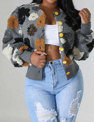 “Ariana” Floral Bomber-Gray Multi![]()  - Regular price