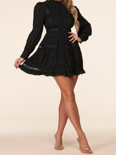 "Tynae" Little Leathered-Lace Black Dress![]()  - Regular price