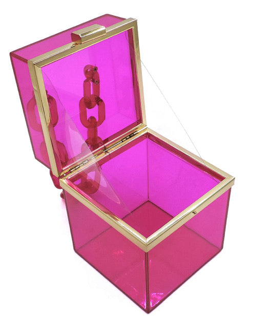 Acrylic See Thru Boxy Purse with Chain