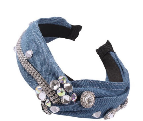 “Tia” Embellished Denim Headband