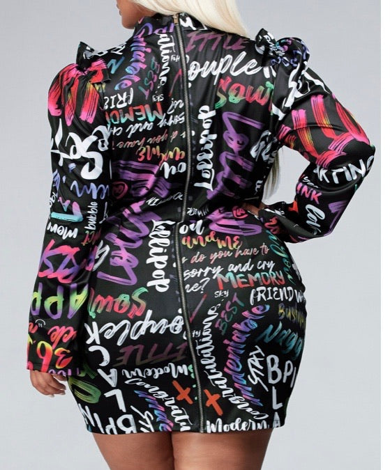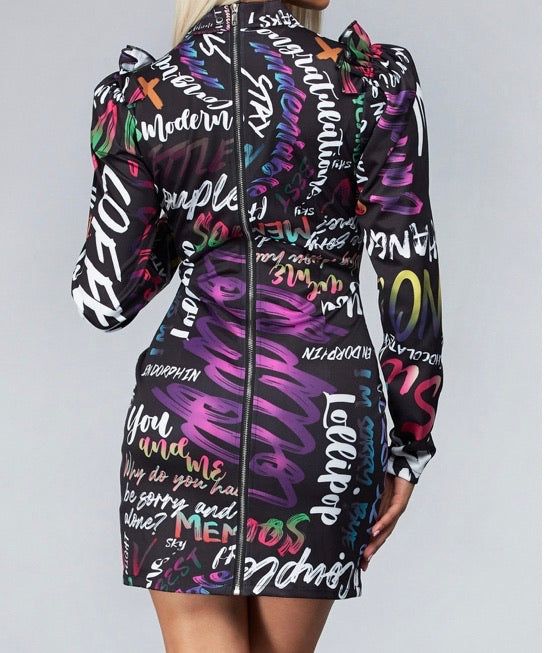 Black dress with Multicolor letters