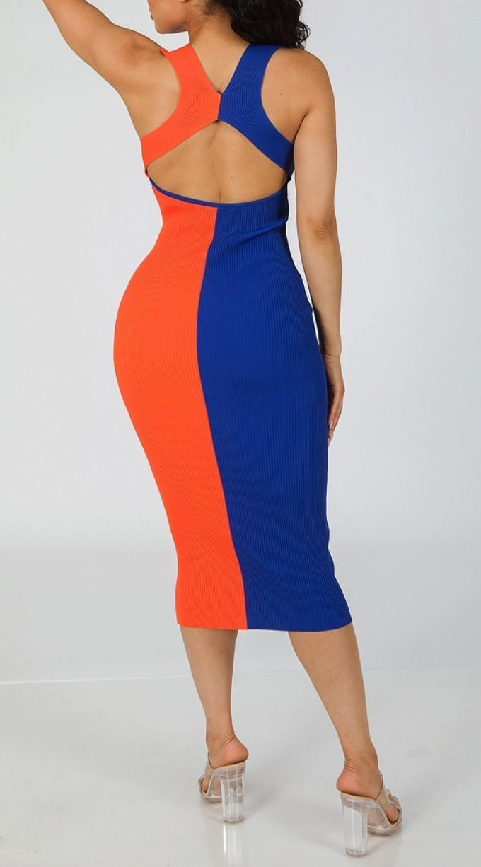 Blue and Orange Colorblock Bodycon Dress